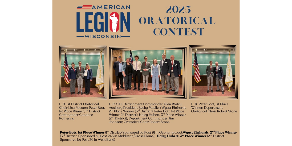 The Wisconsin Oratorical Regional Contest is scheduled March 28, 2026, at Ripon College in the Todd Wehr Building. Opening ceremonies begin at 9 AM, contests begin at 10 AM.